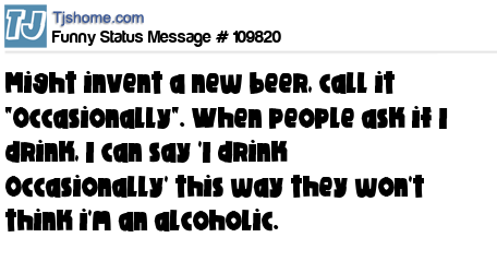 X might invent a new beer, call it "Occasionally". When people ask if I drink, I can say 'I drink Occasionally' this way they won't think i'm an alcoholic.