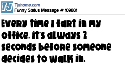 X is Every time I fart in my office, it's always 2 seconds before someone decides to walk in.