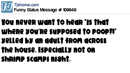 X You never want to hear "Is that where you're supposed to poop?!" yelled by an adult from across the house. Especially not on shrimp scampi night.