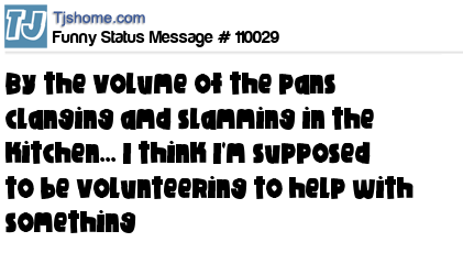 X By the volume of the pans clanging amd slamming in the kitchen... I think I'm supposed to be volunteering to help with something