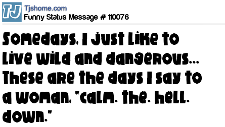 X says Somedays, I just like to live wild and dangerous... These are the days I say to a woman, "calm. the. hell. down."