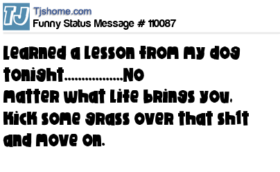 - # 88337 No matter what life brings you, always take a lesson from your dog.. Kick some grass over that s**t and move on.