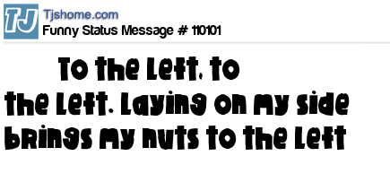 X is ♫♪♫ To the left, to the left. Laying on my side brings my nuts to the left ♫♪♫