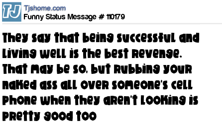 - # 60845 They say being successful and living well is the best revenge... But rubbing your naked ass all over someone's cell phone when they aren't looking is pretty good too.