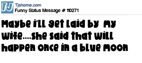 X says maybe i'll get laid by my wife....she said that will happen once in a blue moon