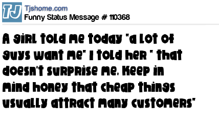 X A girl told me today "a lot of guys want me" I told her " that doesn't surprise me, keep in mind honey that cheap things usually attract many customers"