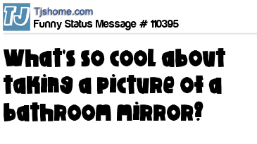 - # 108774 When taking a picture of your mirror for posting it on facebook, please try to angle your camera a little or you'll end up in the picture. I see this mistake a lot