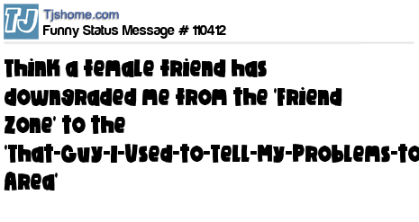 X says Think a female friend has downgraded me from the 'Friend Zone' to the 'That-Guy-I-Used-to-Tell-My-Problems-to-When-I-Needed-Attention Area'