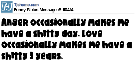 X says Anger occasionally makes me have a sh!tty day. Love occasionally makes me have a sh!tty 3 years.