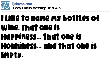 X says I like to name my bottles of wine. That one is Happiness... that one is Horniness... and that one is Empty.