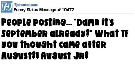 - # 110473 People tweeting............ "Damn it's September already?" What TF you thought came after August?! August Jr?