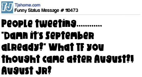 X People tweeting............ "Damn it's September already?" What TF you thought came after August?! August Jr?