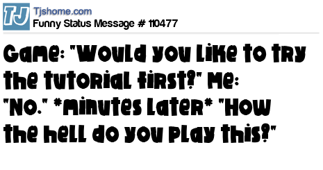 X Game: "Would you like to try the tutorial first?" Me: "No." *minutes later* "How the hell do you play this?"