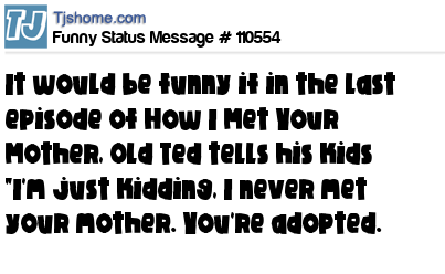 X is It would be funny if in the last episode of How I Met Your Mother, Old Ted tells his kids "I'm just kidding, I never met your mother. You're adopted.