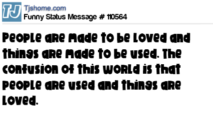 - # 78405 'People were meant to be loved & things were meant to be used. The confusion in this world is that people are used and things are loved!'