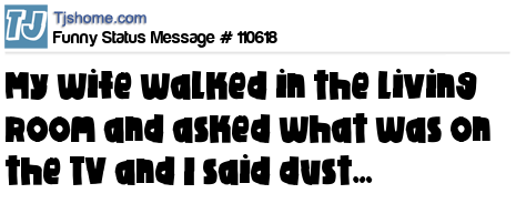 - # 56616 My wife walked into the den & asked "Whats on the tv?" I replied "Dust" .