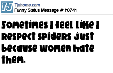 X says Sometimes I feel like I respect spiders just because women hate them.