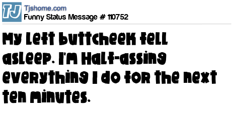 - # 151609 My left buttcheek fell asleep. I'm Half-assing everything I do for the next ten minutes.....