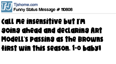 X Call me insensitive but I'm going ahead and declaring Art Modell's passing as the Browns first win this season. 1-0 baby!