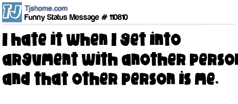 X says I hate it when I get into argument with another person and that other person is me.