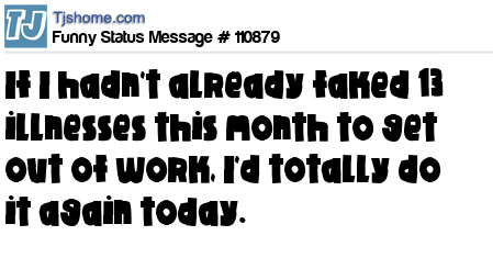 X If I hadn't already faked 13 illnesses this month to get out of work, I'd totally do it again today.