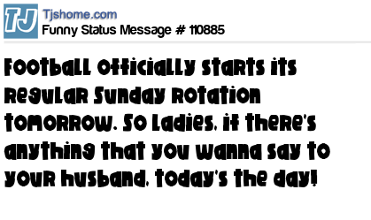 X says Football officially starts its regular Sunday rotation tomorrow. So ladies, if there's anything that you wanna say to your husband, today's the day!