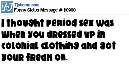 X says I thought period sex was when you dressed up in colonial clothing and got your freak on.