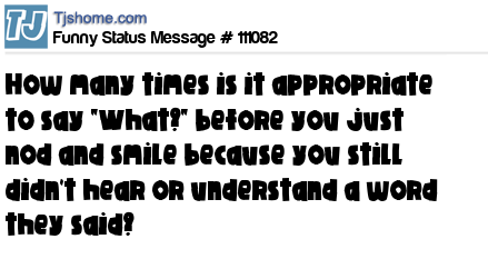 - # 13421 wondering how many times is it appropriate to say "What?" before you just nod and smile because you still didn't hear what they said?