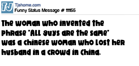 - # 131834 The girl who invented the phrase "all guys are the same" was a Chinese woman who lost her husband in a crowd in China.
