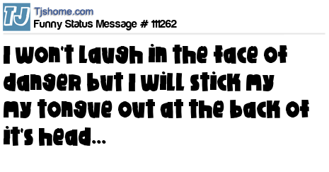 X I won't laugh in the face of danger but I will stick my my tongue out at the back of it's head...