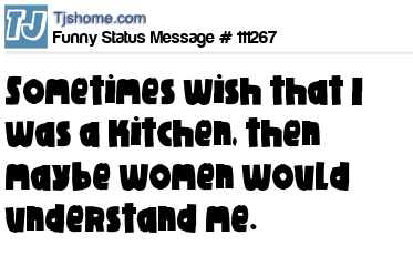 X Sometimes wish that I was a kitchen, then maybe women would understand me.