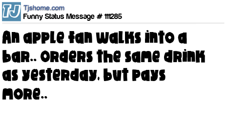 - # 111501 An Apple fan walks into a bar.... Orders the same drink as yesterday, but pays more.