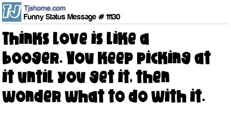 X is thinks Love is like a booger. You keep picking at it until you get it, then wonder what to do with it.