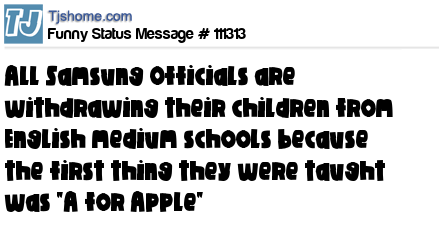 X says All Samsung Officials are withdrawing their children from English medium schools because the first thing they were taught was "A for Apple"