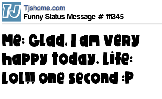 X is Me: Glad, I am very happy today. Life: lol!! one second :P