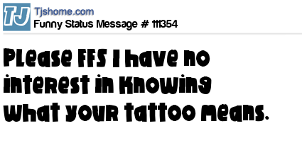 X says Please FFS I have no interest in knowing what your tattoo means.