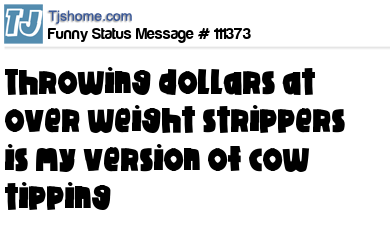 - # 95071 Throwing dollar bills at overweight strippers is my version of cow-tipping