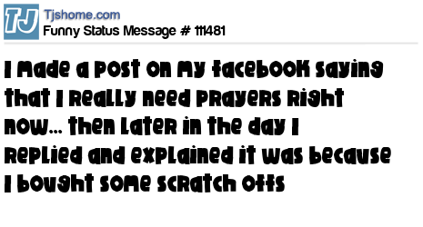 X I made a post on my facebook saying that I really need prayers right now... then later in the day I replied and explained it was because I bought some scratch offs