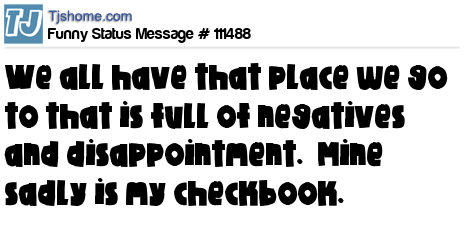 X We all have that place we go to that is full of negatives and disappointment. Mine sadly is my checkbook.