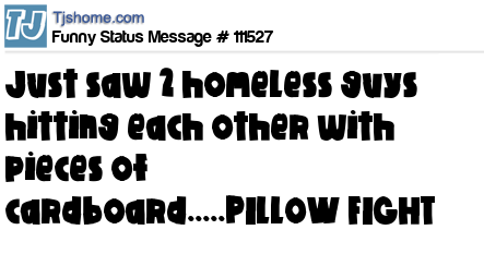 - # 77283 I Just Saw two homeless guys hitting eachother with cardboard; PILLOW FIGHT?!