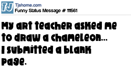 X says My art teacher asked me to draw a chameleon... I submitted a blank page.