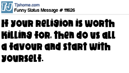 X says If your religion is worth killing for, then do us all a favour and start with yourself.