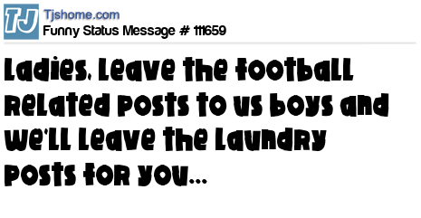 X says Ladies, leave the football related posts to us boys and we'll leave the laundry posts for you...