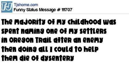 X says The majority of my childhood was spent naming one of my settlers in Oregon Trail after an enemy then doing all I could to help them die of dysentery