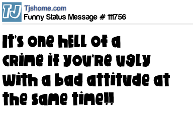 - # 72418 It's one hell of a crime if you're ugly with a bad attitude at the same time.