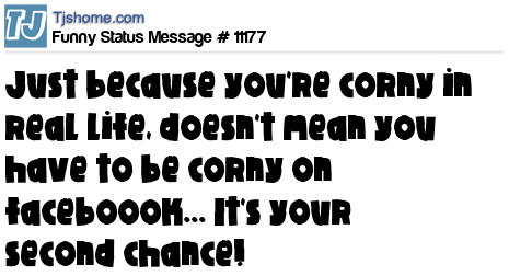 X says Just because you're corny in real life, doesn't mean you have to be corny on faceboook... It's your second chance!