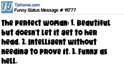 X says The perfect woman: 1. Beautiful but doesn't let it get to her head. 2. Intelligent without needing to prove it. 3. Funny as hell.