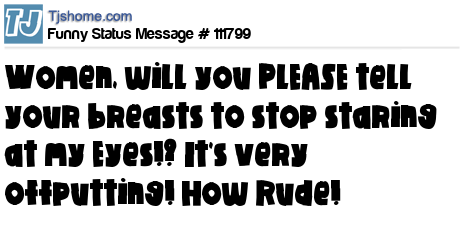 X Women, will you PLEASE tell your breasts to stop staring at my Eyes!? It's very offputting! How Rude!