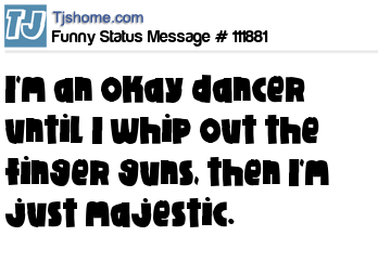 X is I'm an okay dancer until I whip out the finger guns, then I'm just majestic.