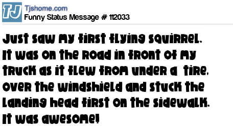 X  Just saw my first flying squirrel. It was on the road in front of my truck as it flew from under a  tire, over the windshield and stuck the landing head first on the sidewalk. It was awesome!